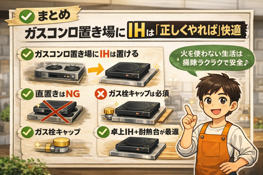 まとめ|ガスコンロ置き場にIHは「正しくやれば」快適